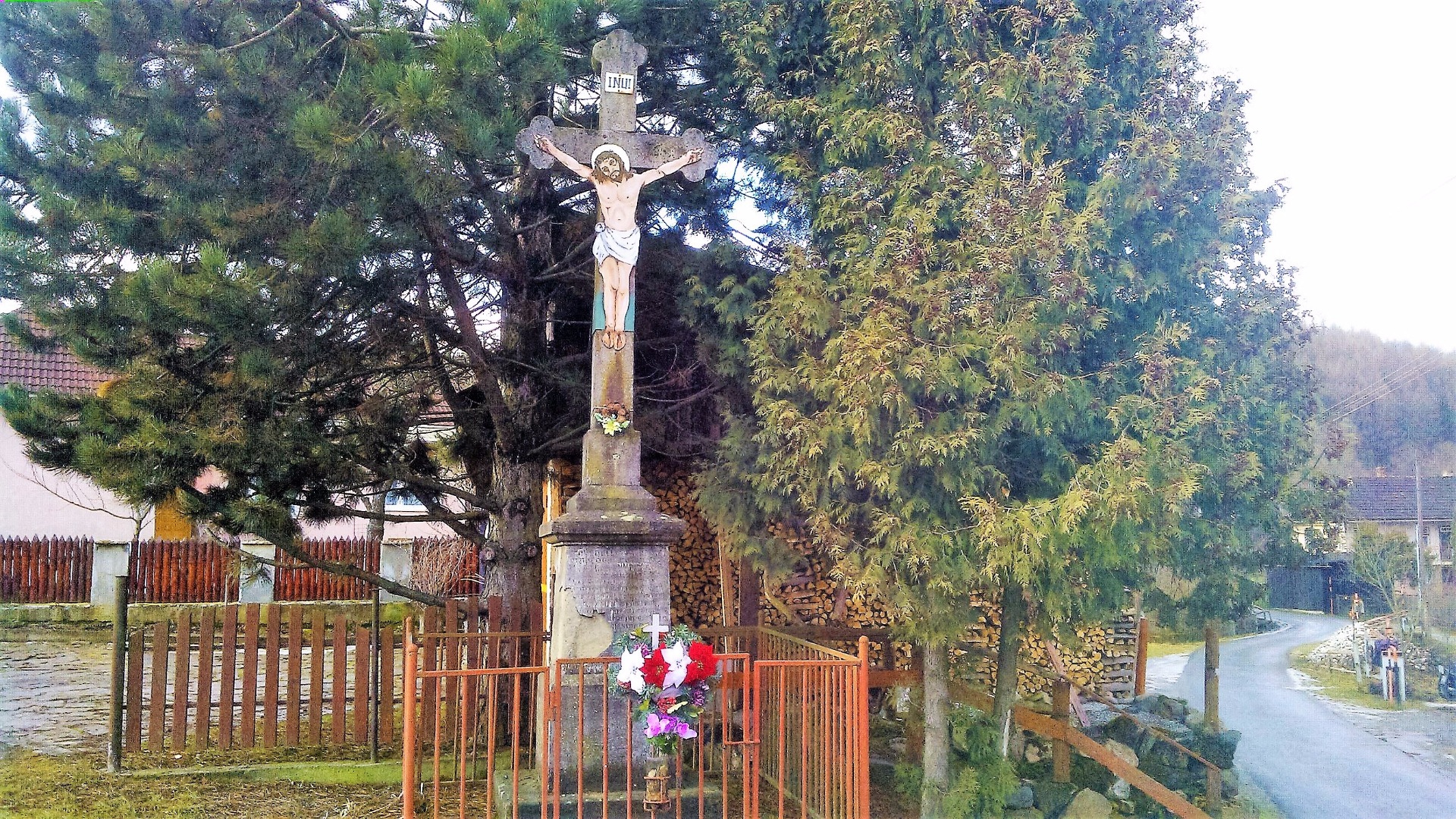 V roku 1995 Michal Fedor spolu s manželkou Alžbetou rod. Radačiovou postavil drevený kríž na začiatku dediny - vľavo zo smeru od Sedlíc. Postavený je na vyvýšenine nad cestou na okraji Krajňákovej lúky. Umučenie na kríži je bronzové. Kríž bol posvätený 21. mája 1995.